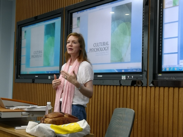 美国德堡罗大学心理学系Verena Graupmann副教授进行了授课,课程围绕着不同文化下的心理及行为差异,如何做跨文化的心理学研究等内容进行,全程采用英文的小组授课模式,内容深入浅出,丰富有趣,受到了心理学系师生的广泛欢迎。心理学系学生参与热情高涨,听讲认真,发言积极,讨论热烈,获得授课教师的好评,开设的《文化心理学(Cultrual Psychology)》顺利结课。