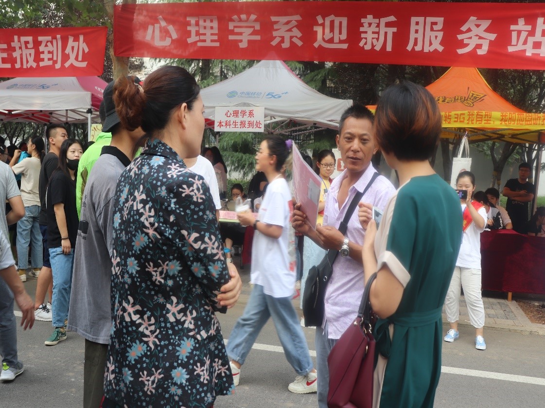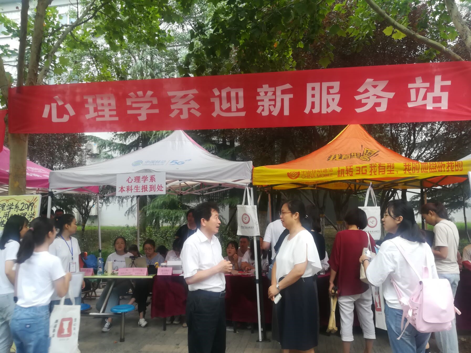 院系领导亲临迎新现场,指导迎新工作,对萌新表达真诚、热烈的欢迎。