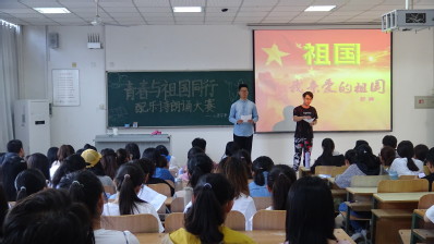 9月28日上午,心理学系于浮烟山校区B202教室举办“青春与祖国同行”红色经典朗诵主题团日活动。