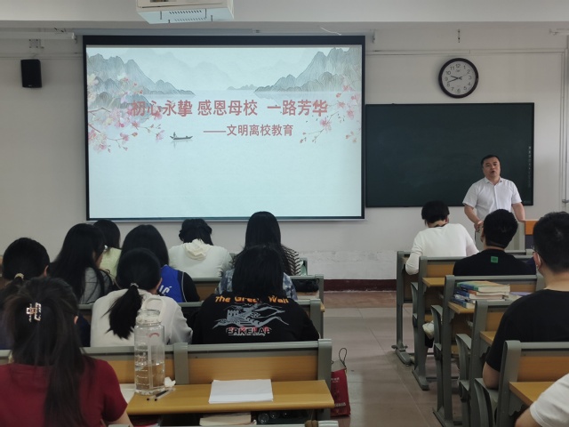 毕业生文明离校教育,是学院学习贯彻习近平新时代中国特色社会主义思想主题教育的举措之一,也是大学生在校的最后一堂课。通过精心的教育、细心的管理、暖心的服务,增强毕业生归属感和获得感,教育引导毕业生树立正确的思想认识和价值取向,以良好精神风貌和饱满工作热情走出校园、迈入社会。