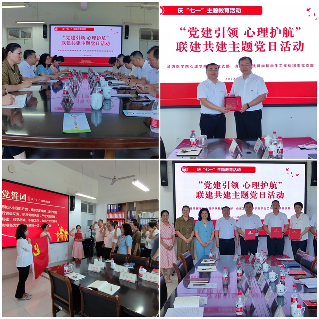 活动伊始,双方共同进行第一议题学习,李洪先领学习近平总书记对党的建设和组织工作作出的重要指示精神,双方就党建及心理健康联建共建工作进行座谈交流,双方分别介绍了党建工作、心理健康工作的基本情况,就如何加强党支部建设进行深入交流,互相学习借鉴先进经验做法,就心理健康共建工作交换意见。王艳郁表示,将充分发挥专业优势,开展心理健康共建工作,双方表示将以此次联建共建为契机,进一步加强交流,促进党建、心理工作共同发展。随后,所有参会人员共同重温入党誓词,李洪先向山东工业技师学院学生工作处团委党支部赠送政治生日礼物。